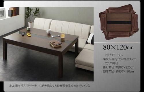 ◆こたつ3点セット:こたつテーブル・掛け布団・敷き布団◆こたつ布団2点セット:掛け布団・敷き布団◆こたつテーブル単品:こたつテーブル《こたつテーブル》■75 75 cm【サイズ】幅75 奥行75 高さ39cm【製品重量】17kg【梱包サイズ/重量】81 90 16cm / 18kg■75 105 cm【サイズ】幅75 奥行105 高さ39cm【製品重量】22kg【梱包サイズ/重量】82 120 16cm / 23kg■80 120 cm【サイズ】幅80 奥行120 高さ39cm【製品重量】24.5kg【梱包サイズ/重量】87 128 16cm / 25.5kg■全サイズ共通【天板耐荷重】約20kg【材質】プリント化粧繊維板、ラバーウッド、MDF、5mm強化ガラス 仕上げ:ウレタン塗装【カラー】ウォールナットブラウン ブラック【ヒーター】 正方形(75 75) :300W石英管ヒーター 長方形(75 105)・(80 120):510W石英管ヒーター いずれも中間スイッチ式【電源コード長さ】約3m【梱包数】1【生産国】ベトナム【備考】ヒーター部メーカー1年保証付き ※組立品※商品のサイズ・重量は概算です。