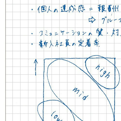 ●罫線には上下左右中央に目印がついているので、ノートを分割して使う時に便利です。