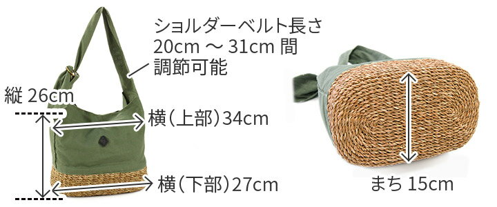 カラー(左から) : ブラック×ブラック、ナチュラル×ブラック、グリーン×ブラック、グレー×グレー ブランド名 CLEDRAN クレドラン シリーズ HAND & WORK ハンド&ワーク 品番 CL3069 外寸 縦26cm×横34cm(上部)、27cm(下部)×まち15cm 重さ 340g 持ち手立ち上がり 20cm〜31cmの間で調節可能(幅9.5cm) 収納書類サイズ A5 メイン開口部 マグネット 表素材 水草+コットン ◇手ざわり: 柔 ■□□□□ 硬 (※表記は目安です) 裏地 有り 内ポケット オープン×1 カラー ナチュラル×ブラック(81-4750)、グレー×グレー(81-4752)、グリーン×ブラック(81-4751)、ブラック×ブラック(81-4753) 生産国 日本(製作)、フィリピン(素材) ※数値は全て慨寸表記となります。