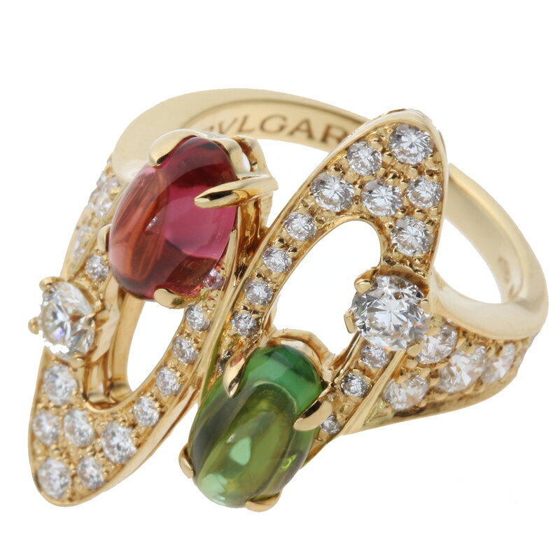 【銀座店】 ブルガリ エリシア ペリドット ピンクトルマリン ダイヤモンド レディース リング・指輪 750イエローゴールド 8号 ゴールド DH57394【大黒屋質店出品】 【中古】【送料無料】【店頭受取対応商品】